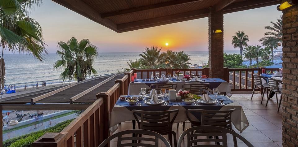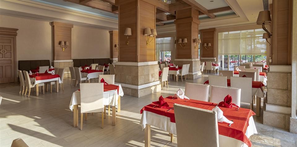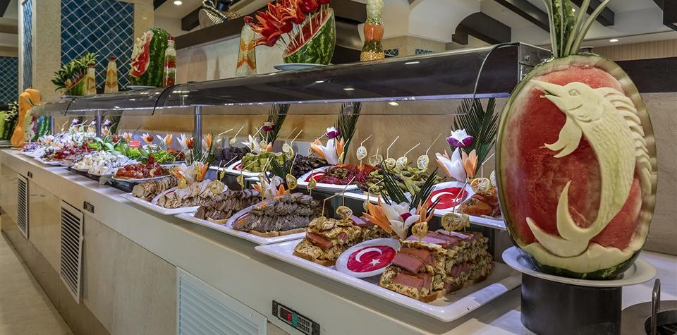 Sabah kahvaltısı, öğle ve akşam yemekleri açık büfe olup, tesisin belirlemiş olduğu markalar dahilinde 24 saat yerli içecekler ücretsizdir. Konsept dışında import ve premium içkiler, şişeli içecekler, taze sıkılmış meyve suları ücretlidir. Tesis gerekli doluluğu sağlayamadığı takdirde konsept veya konsept dahilinde değişiklik uygulayabilir. A'la carte restoranlar ücretsiz olup konaklama (en az 7 gece) süresince bir alacarte için 1 kere rezervasyon yapılabilmektedir.