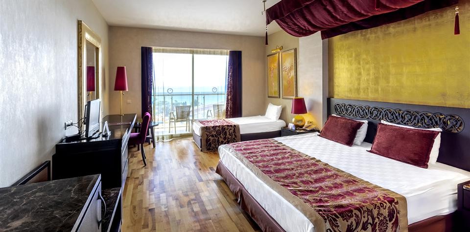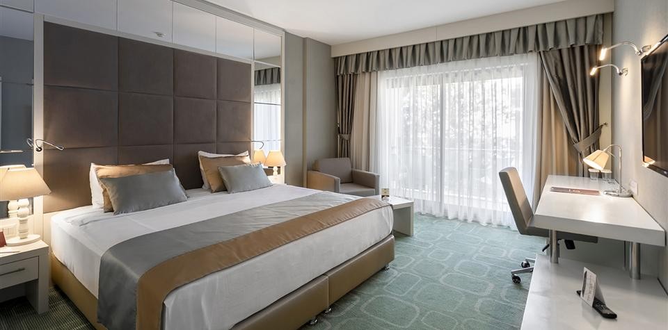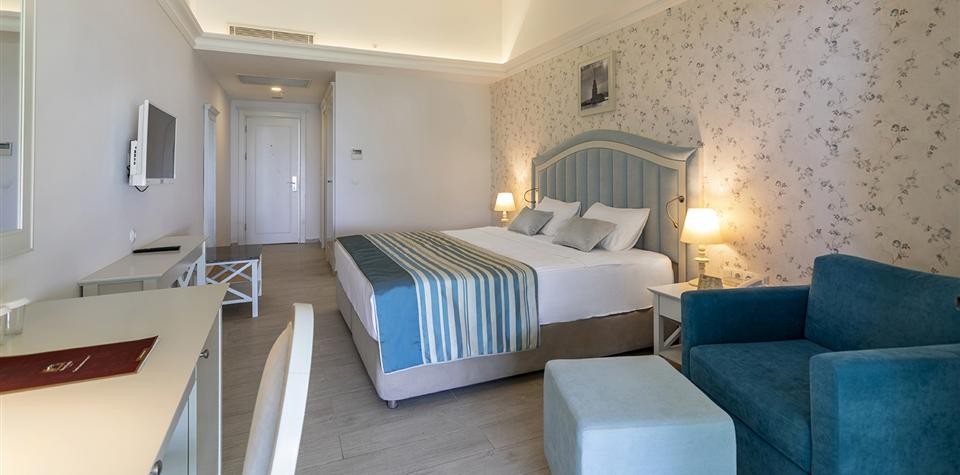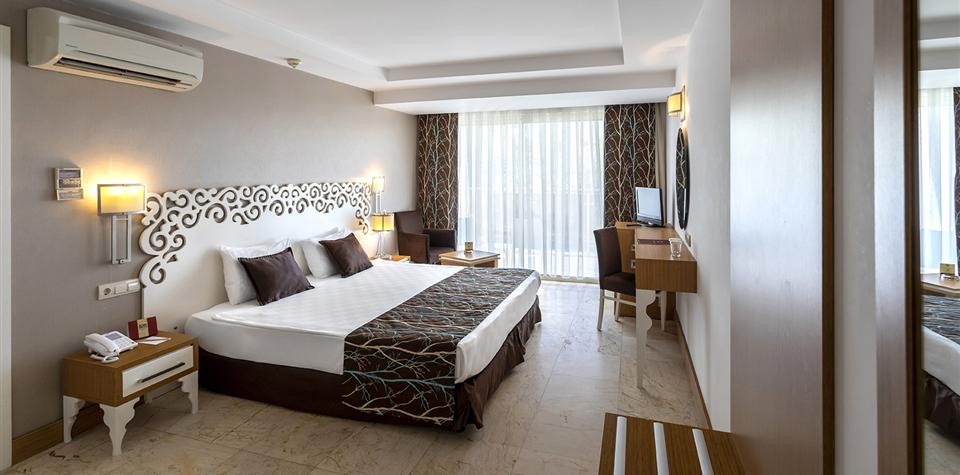* Deniz veya Kara Manzaralı Standart Odaları: Tümü ana binada 215 adet bulunan odalar 25-30 m², 3 kişi kapasiteli, deniz yada kara manzaralı, french yada twin yataklı, banyoda duşlu küvet ve telefon, minibar, saç kurutma makinesi, direkt hatlı telefon, uydu yayınlı 26 inch lcd tv, emanet kasası, laminant zemin, merkezi klima (hava durumuna göre belirli saatlerde), mevcuttur.