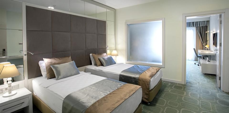 * Resort Aile Oda: Resort standart oda ile aynı konfora sahip bu odalar 96 adettir. 2 yatak odalı, ara kapılı, french ve twin yataklı, 41-53 m², 4 kişi kapasiteli, bahçe yada havuz manzaralı ve tek banyoludur.