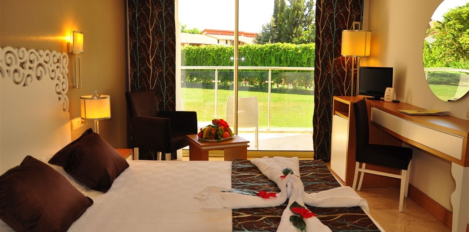 * Bahçe Odası: Tüm garden odaları french veya twin yataklı, 22-25 m², 2 kişi kapasiteli, bahçe manzaralı, 85 adet connection oda mevcut olup, odalarda minibar, saç kurutma makinesi, banyoda duş ve telefon, direkt hatlı telefon, 22 inch uyu yayınlı tv, emanet kasa, fayans zemin ve vrv klima mevcuttur.